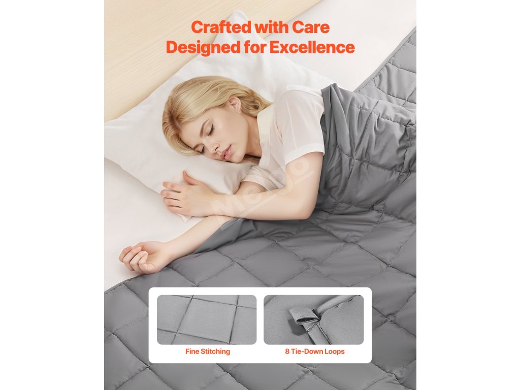 Naša záťažová prikrývka vo veľkosti kráľovnej v sebe spája odolnosť s precíznym spracovaním. Sedemvrstvová konštrukcia zaisťuje, že prikrývka zostane v ideálnom tvare, zatiaľ čo prešívané švy rovnomerne rozdeľujú hmotnosť pre konzistentné pohodlie.