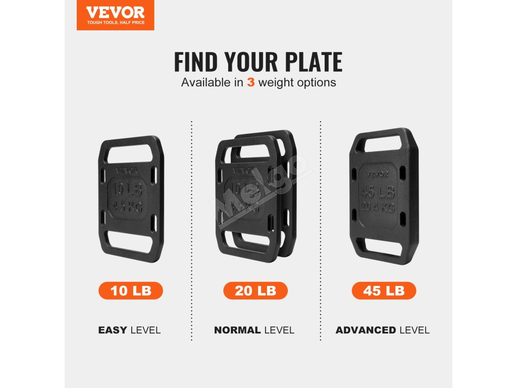 Ľahko si nastavíte intenzitu tréningu od 10 libier do 20 libier. Bočné otvory umožňujú pridávať alebo kombinovať dosky s popruhmi, čo ponúka flexibilný a bezpečný spôsob prispôsobenia záťaže.