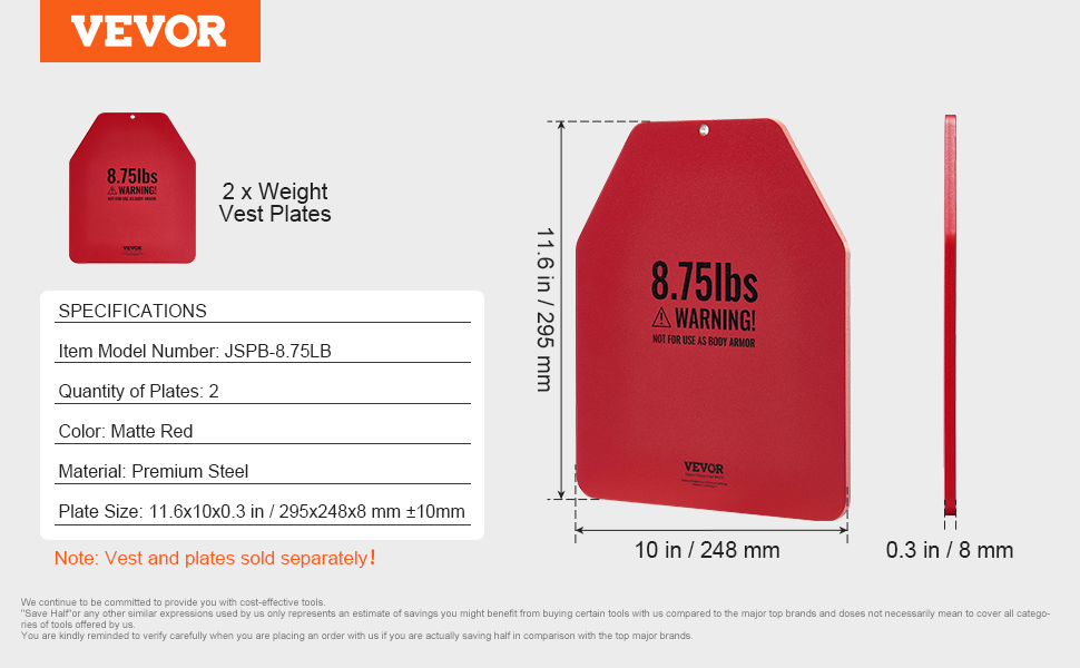 Zlepšite svoju fitness rutinu s našou sadou dvoch 8,75 lb záťažových dosiek do vesty. Upozornenie: vesta sa predáva samostatne, čo vám umožní prispôsobiť si vybavenie.