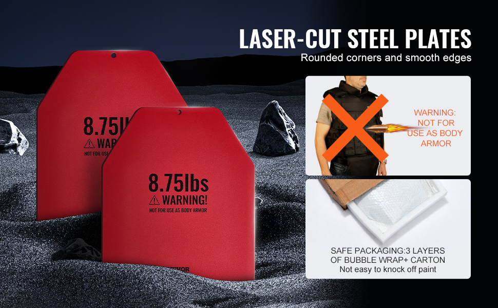 Tieto záťažové platne sú vyrobené z odolnej ocele so zaoblenými rohmi a hladkými hranami a sú konštruované na dlhé trate. Dodávajú sa zabalené v troch vrstvách bublinkovej fólie na dodatočnú ochranu. Poznámka: Nie sú určené na použitie ako pancier na telo.