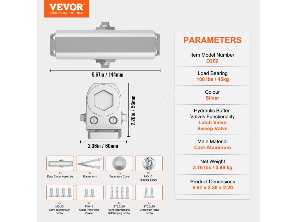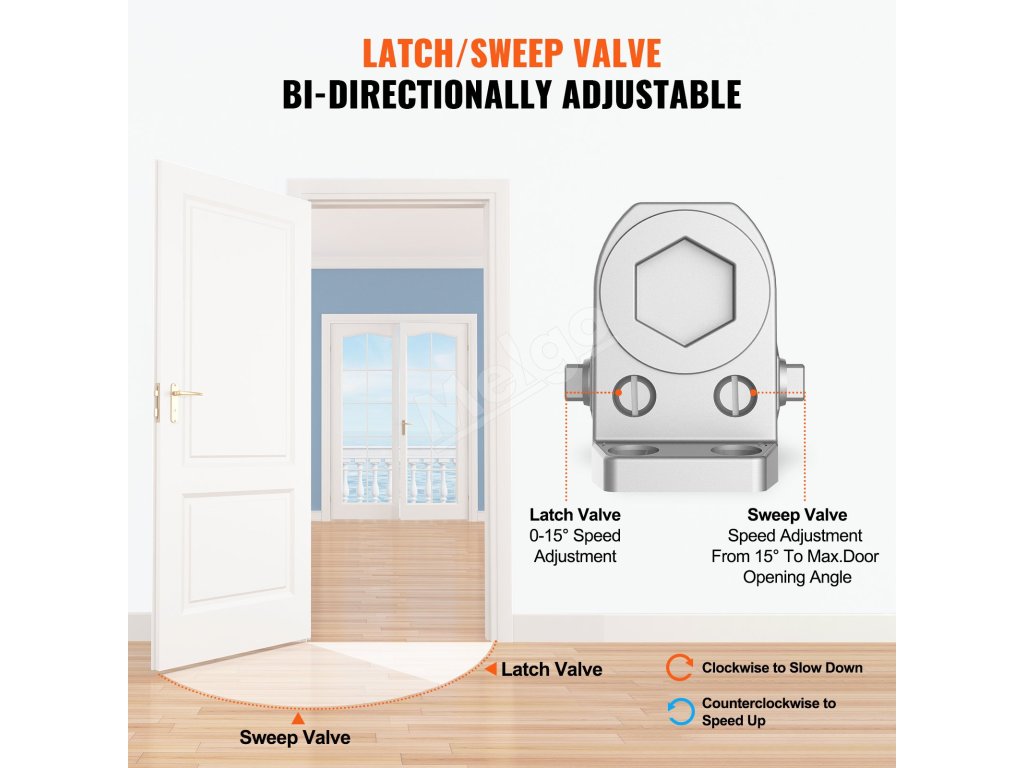 Dverný zatvárač hydraulický nastaviteľný pre dvere do 45 kg, hliník
