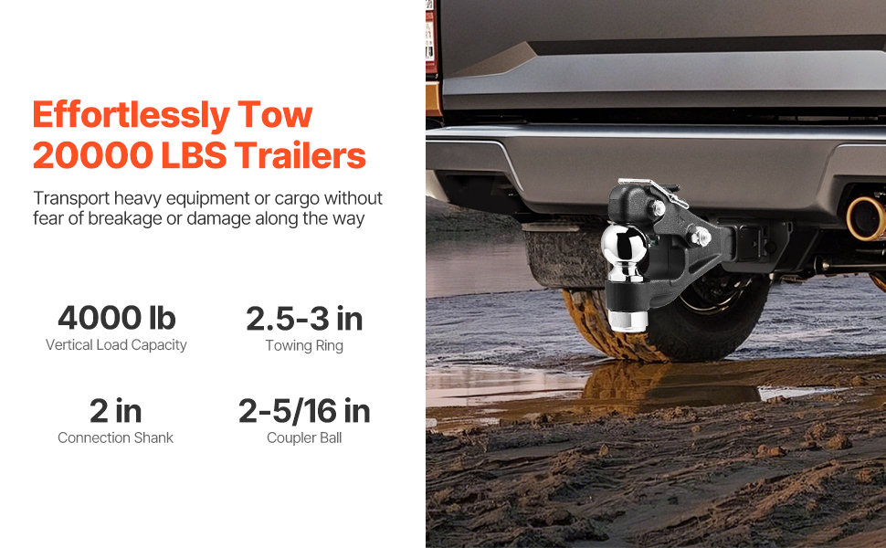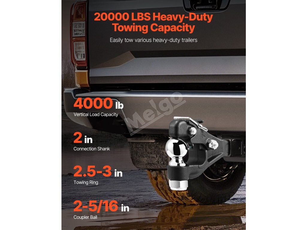 Pintlový hák 20000 lbs, 2-inch, 2-5/16-inch guľa, 2.5–3-inch lunette