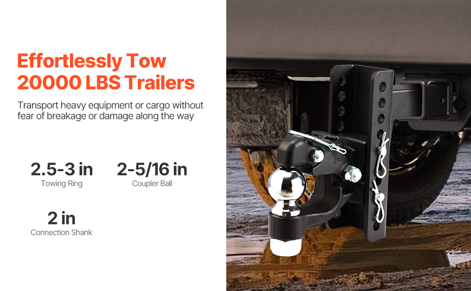 Nastaviteľný pintle hák 20000 lbs, pre 2-inch, 2-5/16-inch guľa