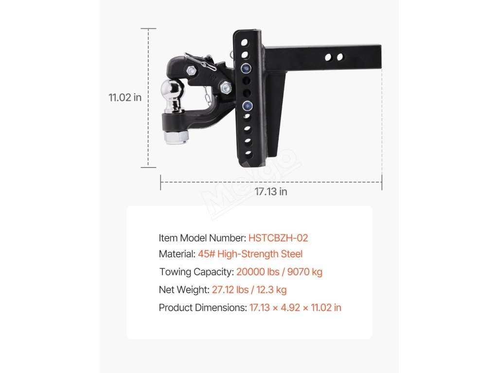Nastaviteľný pintle hák 20000 lbs, pre 2-inch, 2-5/16-inch guľa