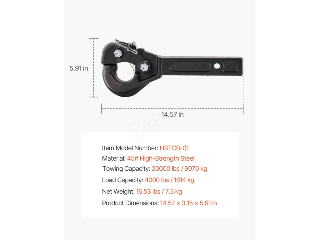 Náš závesný hák s nosnosťou až do 20 000 libier je špeciálne navrhnutý pre ťažké náklady so štandardizovanými rozmermi, aby vyhovoval potrebám rôznych prívesov.