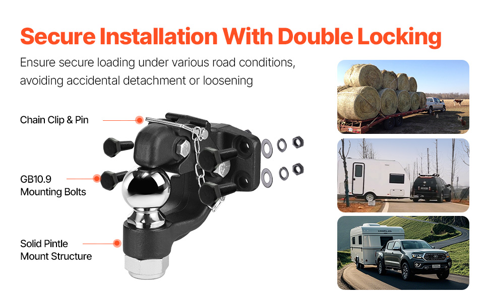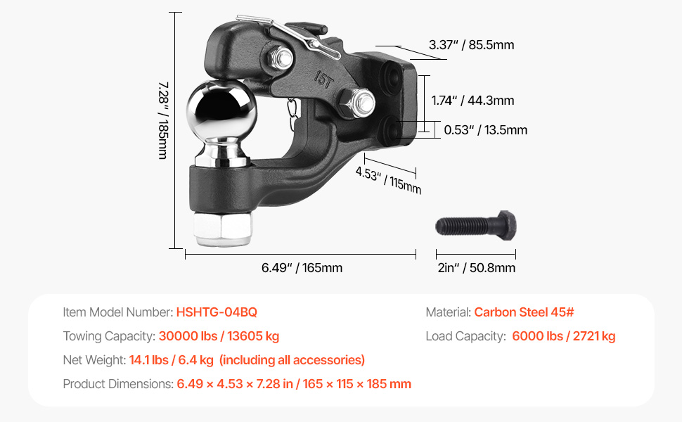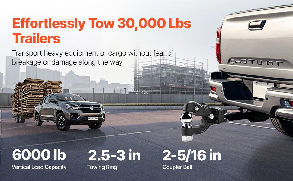 Pintlový hák 30000 lbs, 2-5/16-inch guľa, pre 2.5–3-inch očko, montáž