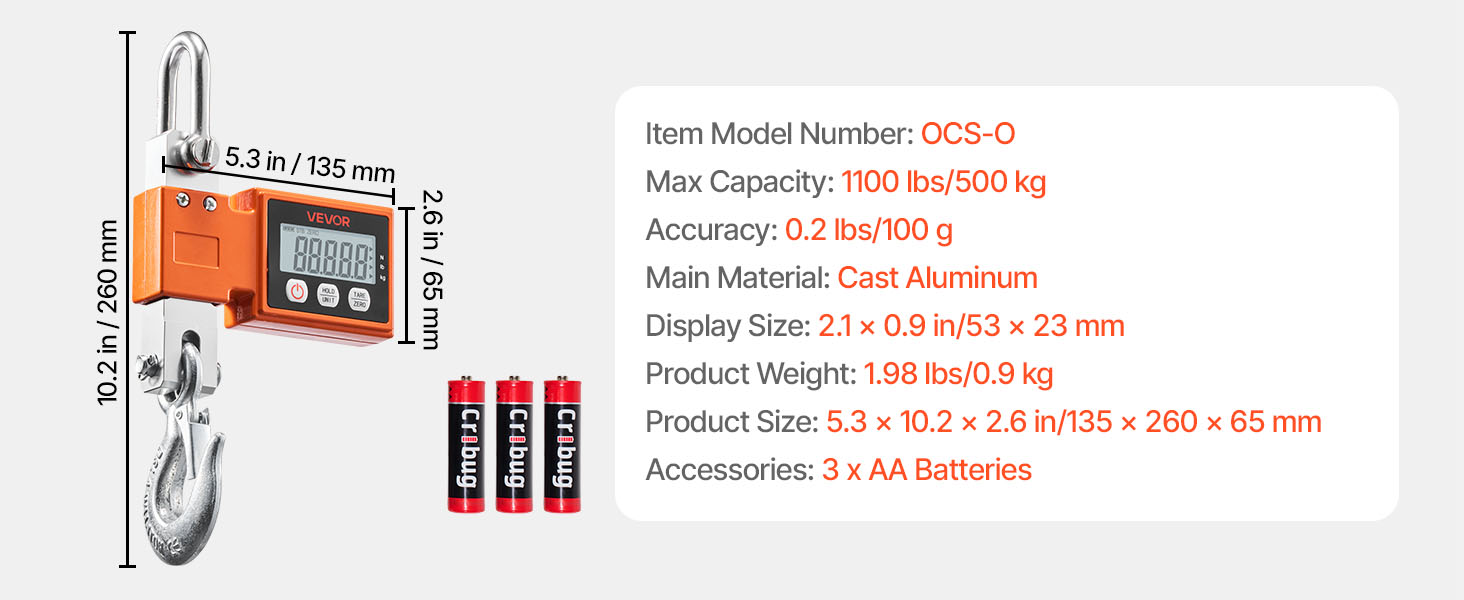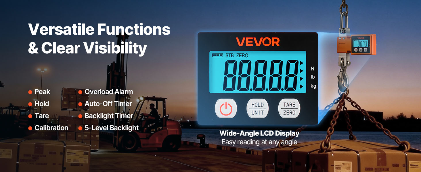 Táto žeriavová váha spája vysokú kapacitu s ostrým rozlíšením. Citlivý senzor meria s presnosťou 0,2 lb/100 g, takže môžete s rovnakou istotou sledovať malé zmeny aj ťažké náklady.