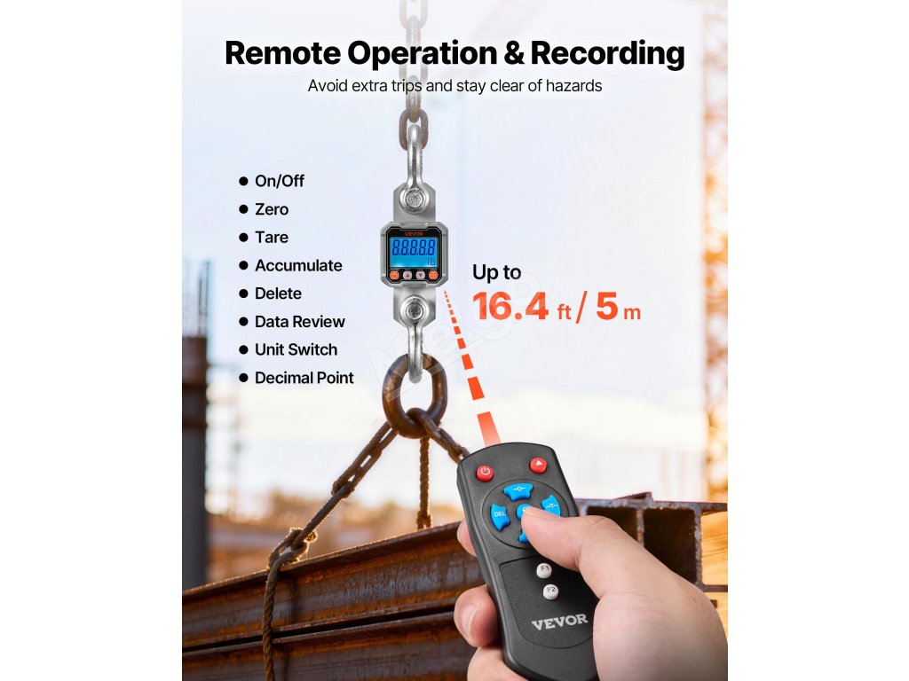 Táto závesná váha sa dodáva s IR diaľkovým ovládačom, ktorý funguje až do vzdialenosti 5 metrov. Stačí namieriť, kliknúť a ovládať základné funkcie – takže máte všetko pod kontrolou, aj keď ustúpite. Jednoduché!