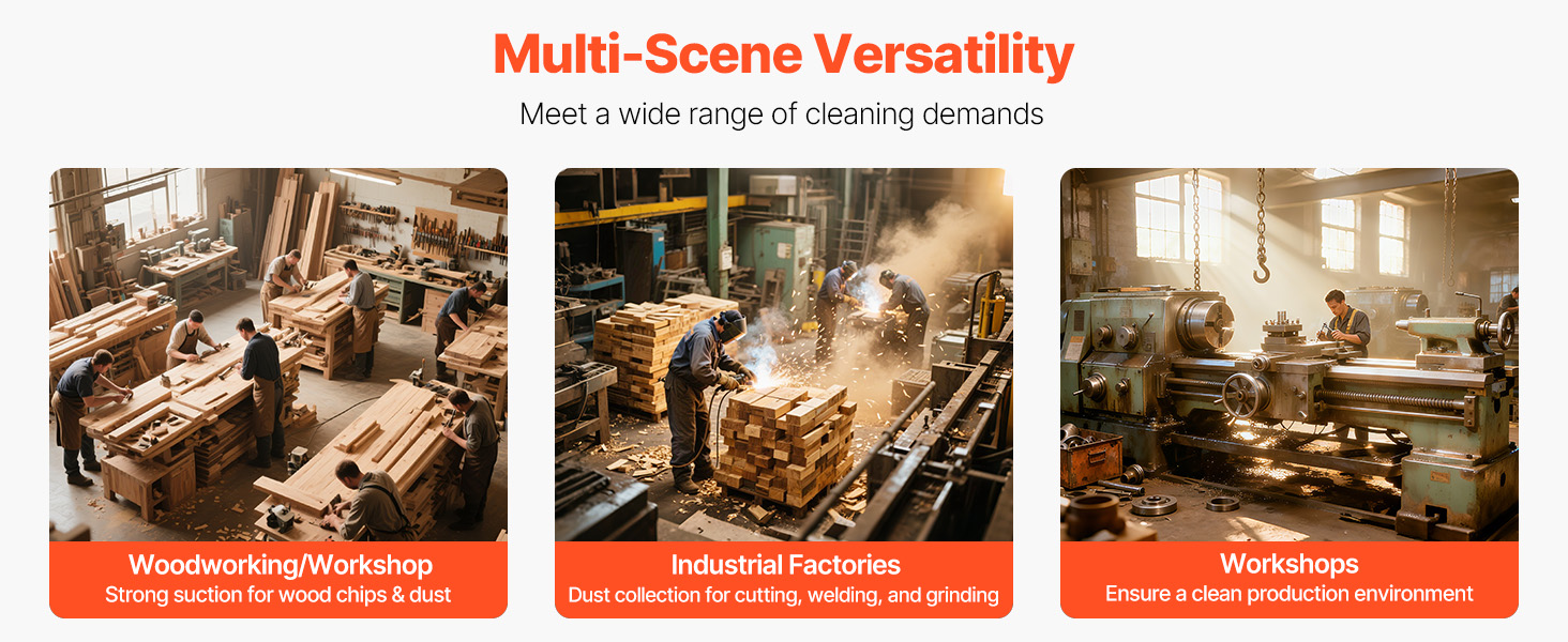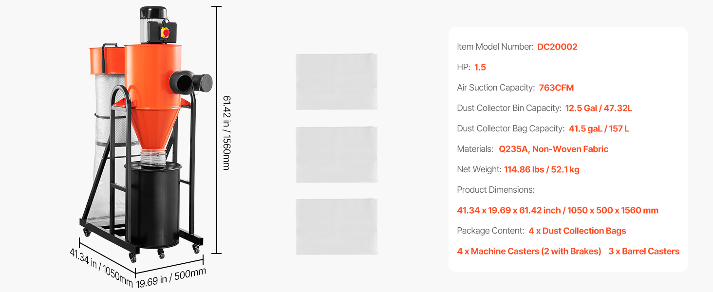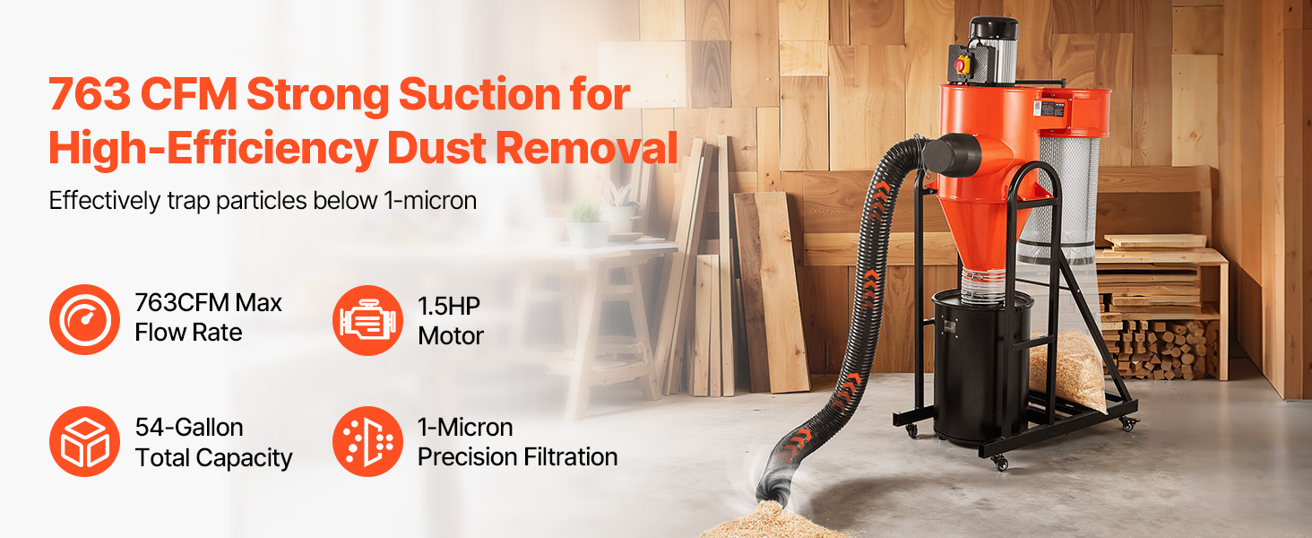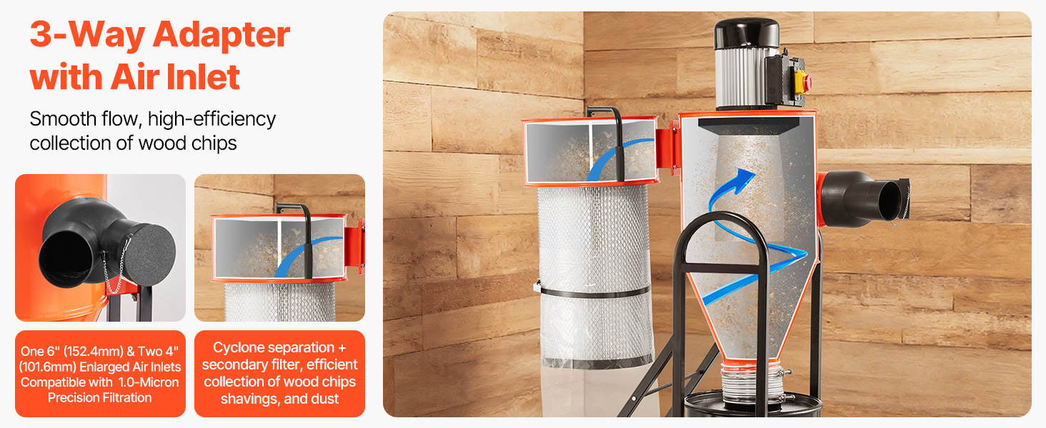 Tento cyklónový filtračný čistič, ktorý je ideálny pre drevárske, priemyselné a iné špecializované dielne, si poradí s dreveným prachom, kovovými hoblinami, mikročasticami a vzdušnými nečistotami. Ponúka vysokoúčinné zachytávanie prachu a kontrolu explózie, čím spĺňa náročné požiadavky od ťažkých až po presné prevádzky.