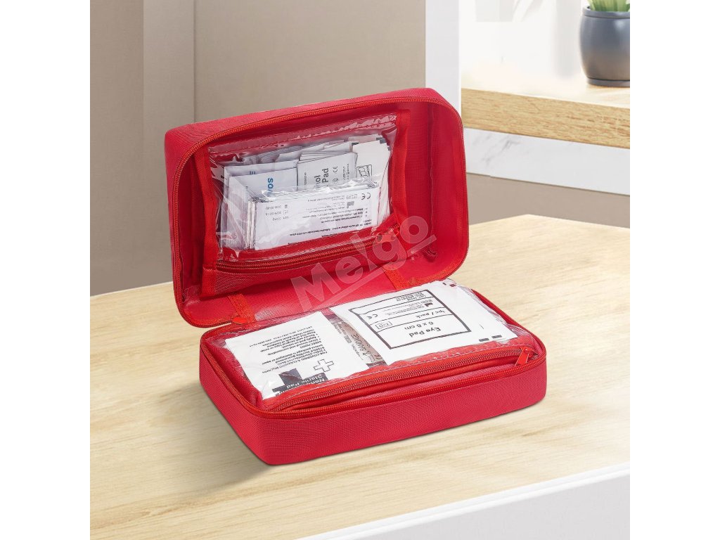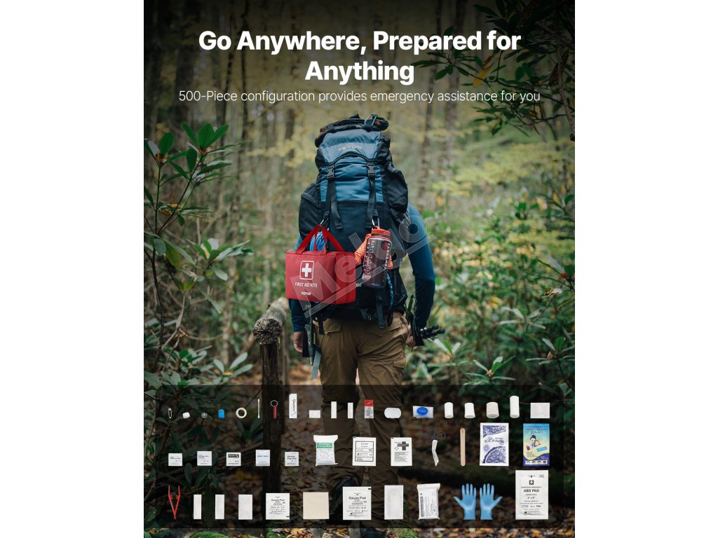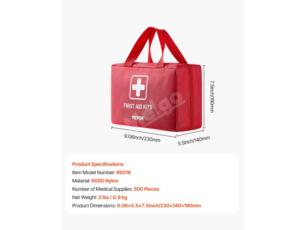 Naša pohotovostná lekárnička je vyrobená z odolného nylonu a je odolná voči opotrebovaniu, aby udržala vaše zdravotnícke potreby v bezpečí za akýchkoľvek podmienok. Viacero priehradiek efektívne organizuje 500 položiek prvej pomoci pre ľahký prístup. Je testovaná podľa vysokých zdravotných noriem a je ideálna na dobrodružstvá v prírode, cestovanie alebo každodenné používanie.