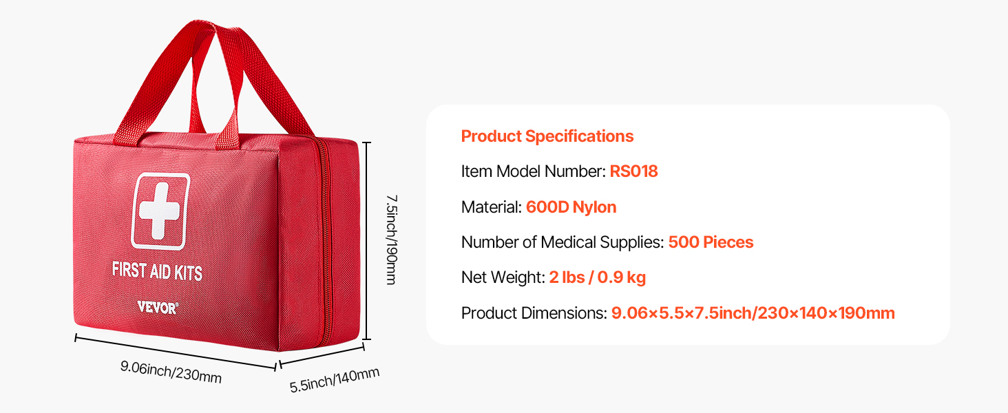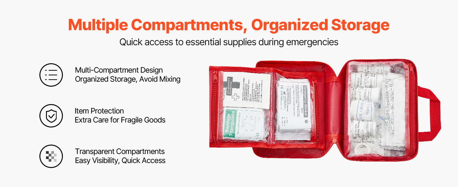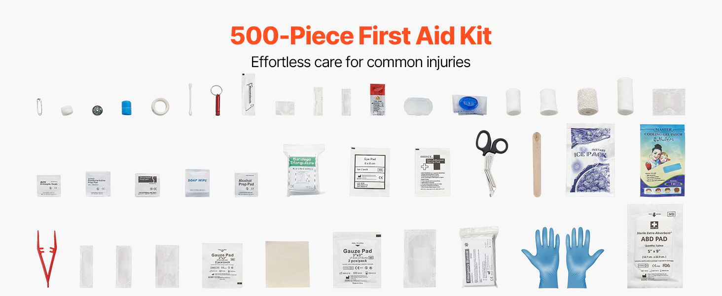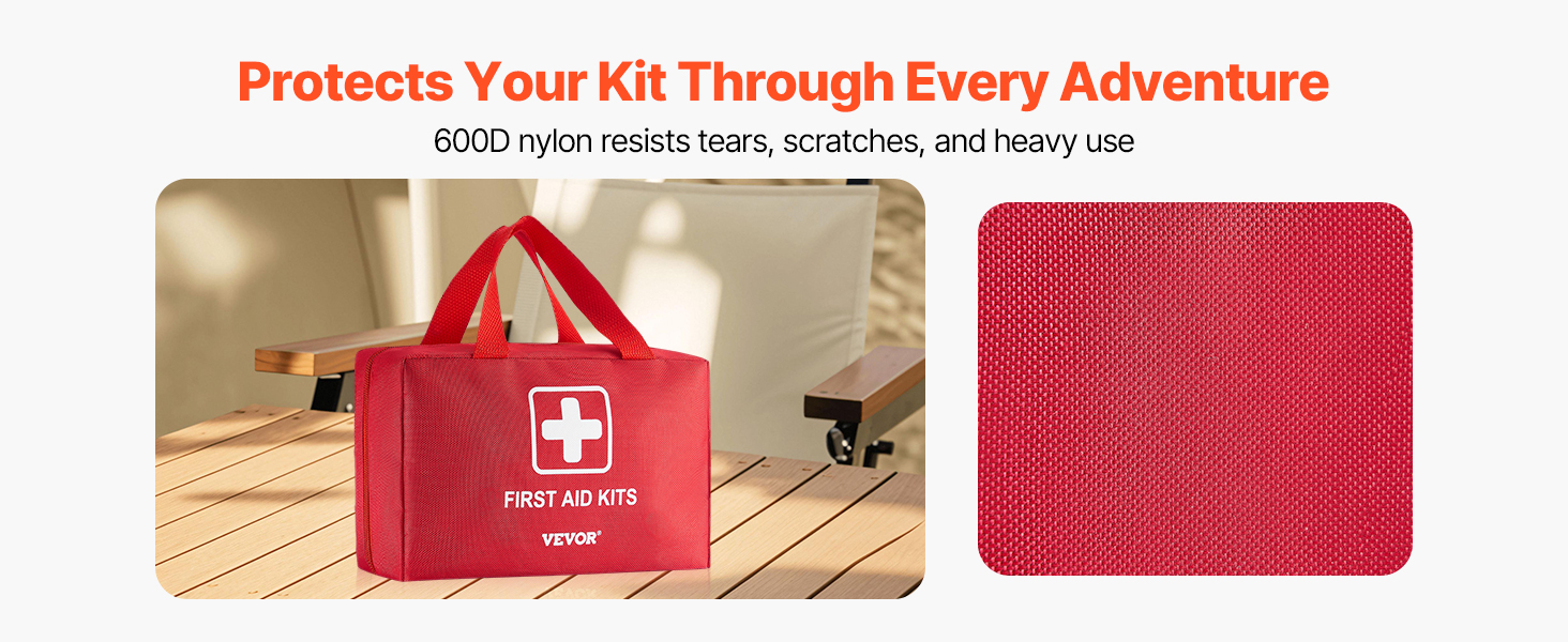 Naša pohotovostná lekárnička je vyrobená z odolného nylonu a je odolná voči opotrebovaniu, aby udržala vaše zdravotnícke potreby v bezpečí za akýchkoľvek podmienok. Viacero priehradiek efektívne organizuje 500 položiek prvej pomoci pre ľahký prístup. Je testovaná podľa vysokých zdravotných noriem a je ideálna na dobrodružstvá v prírode, cestovanie alebo každodenné používanie.