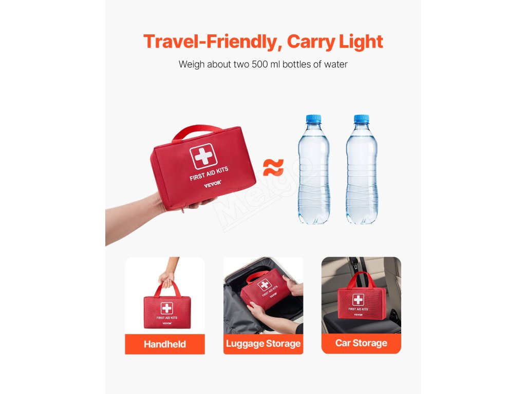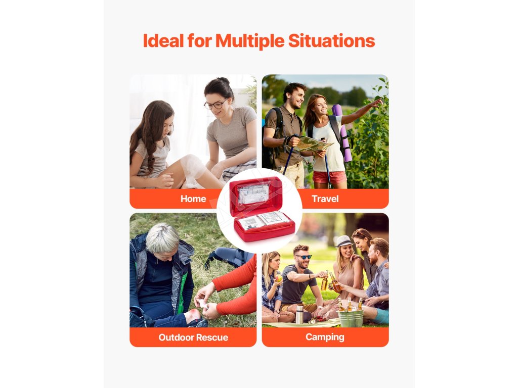 Naša pohotovostná lekárnička je vyrobená z odolného nylonu a je odolná voči opotrebovaniu, aby udržala vaše zdravotnícke potreby v bezpečí za akýchkoľvek podmienok. Viacero priehradiek efektívne organizuje 500 položiek prvej pomoci pre ľahký prístup. Je testovaná podľa vysokých zdravotných noriem a je ideálna na dobrodružstvá v prírode, cestovanie alebo každodenné používanie.
