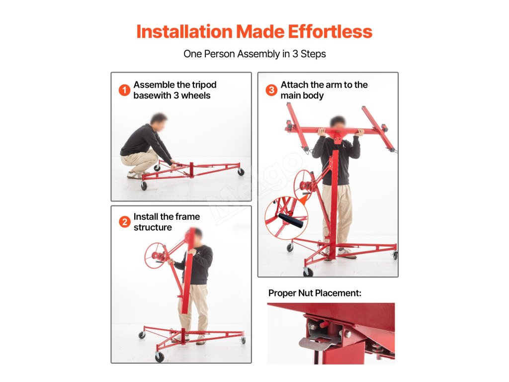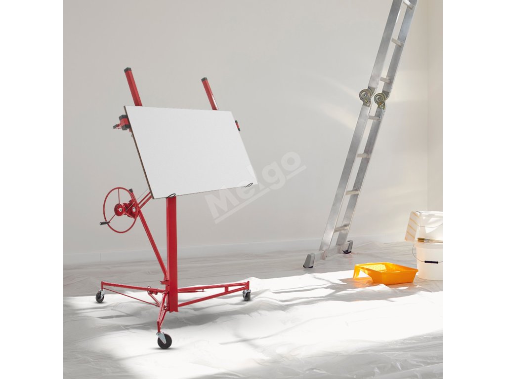 Zdvihák na zdvíhanie sadrokartónových dosiek so základňou trojnožky je dostatočne stabilný na to, aby uniesol ťažký plech. A je tiež vybavený zabudovanou brzdou na zvýšenie bezpečnosti.