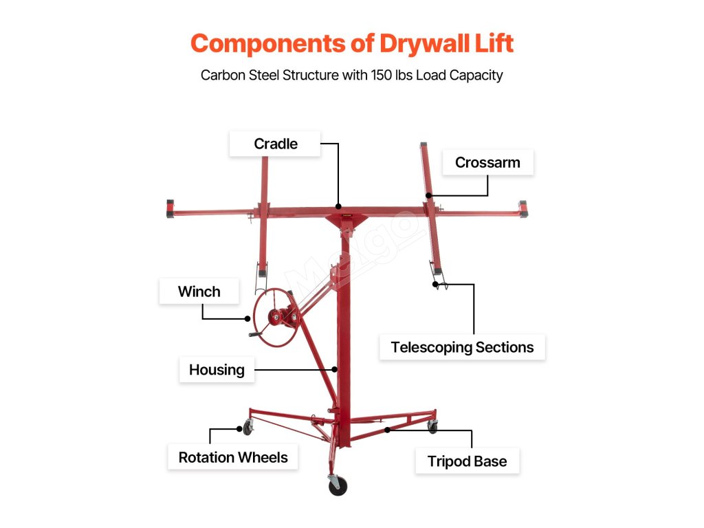 Zdvihák na sadrokartón s maximálnou nosnosťou 150 libier/68 kg. A vysokokvalitný materiál z uhlíkovej ocele a vynikajúce remeselné spracovanie ho robia robustným, odolným voči opotrebovaniu.