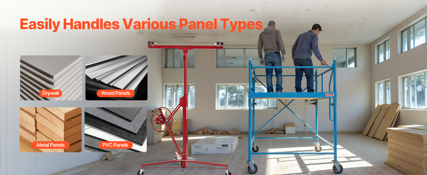 Tento zdvihák ľahko manipuluje s rôznymi materiálmi vrátane sadrokartónových dosiek, drevených panelov, plechov, PVC dosiek a ďalších, čím spĺňa vaše rozmanité potreby pri renovácii.