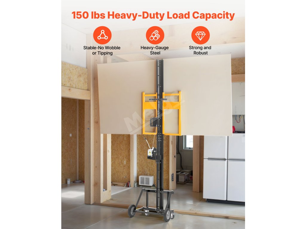 Montáž alebo demontáž v priebehu niekoľkých sekúnd bez použitia náradia. Unesie až 150 libier. Vybavený kolieskami a brzdami pre vynikajúcu stabilitu a plynulú mobilitu, vďaka čomu je ideálny na jednoduchú inštaláciu sadrokartónu na strop a stenu.