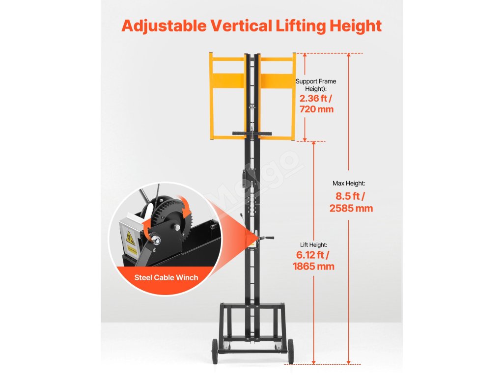 Tento zdvihák vyrobený s hlavnou tyčou z vysokopevnostnej ocele, konštrukciou navijaka, ktorá šetrí prácu, robustnou základňou a kolesami zaručuje stabilitu, odolnosť a bezpečnosť.
