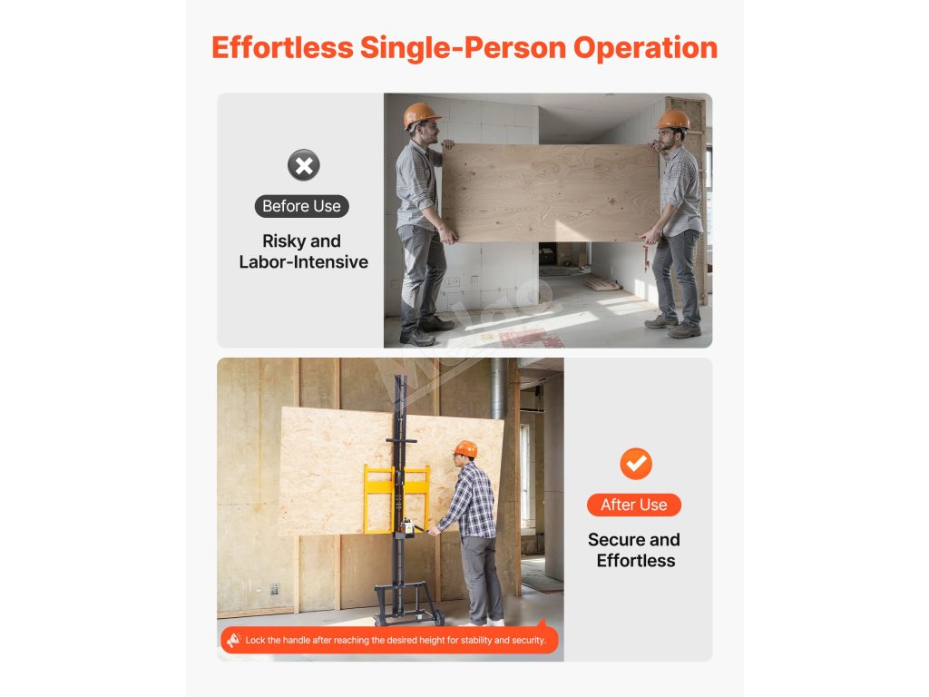 Tento zdvihák ľahko manipuluje s rôznymi materiálmi vrátane sadrokartónových dosiek, drevených panelov, plechov, PVC dosiek a ďalších, čím spĺňa vaše rozmanité potreby pri renovácii.
