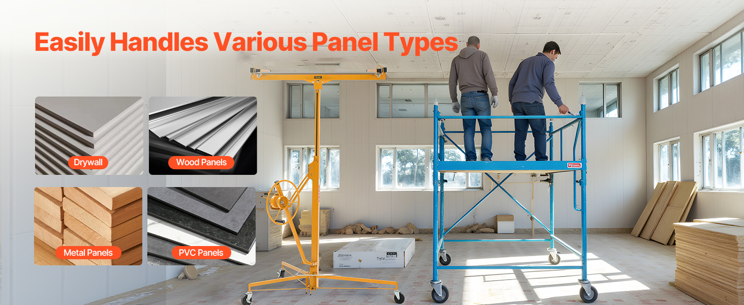 Tento zdvihák ľahko manipuluje s rôznymi materiálmi vrátane sadrokartónových dosiek, drevených panelov, plechov, PVC dosiek a ďalších, čím spĺňa vaše rozmanité potreby pri renovácii.