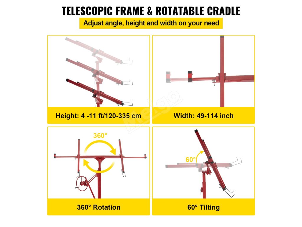 Zvedák na sadrokartón, 68 kg, teleskopické rameno, 121.92×487.7 cm