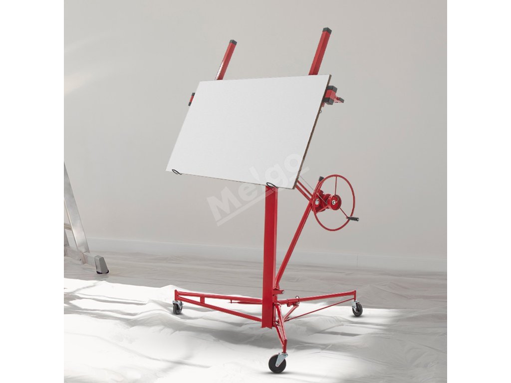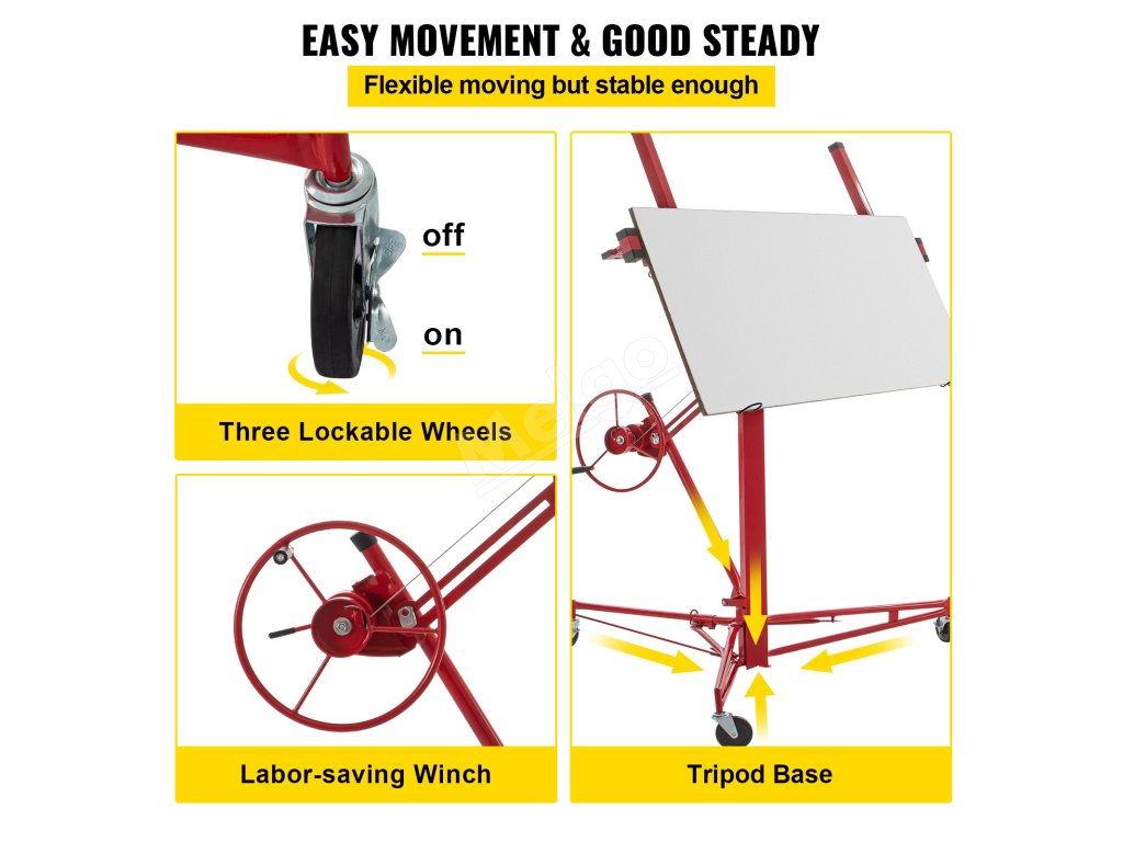 Zdvihák na zdvíhanie sadrokartónových dosiek so základňou trojnožky je dostatočne stabilný na to, aby uniesol ťažký plech. A je vybavený aj zabudovanou brzdou na zvýšenie bezpečnosti.