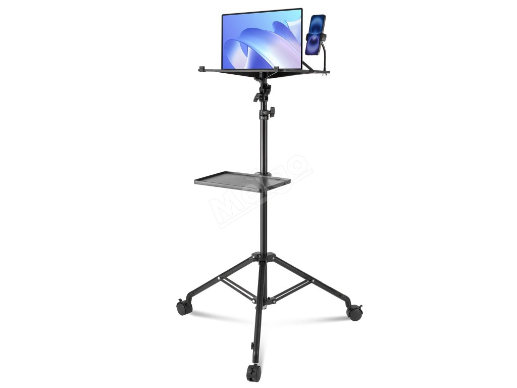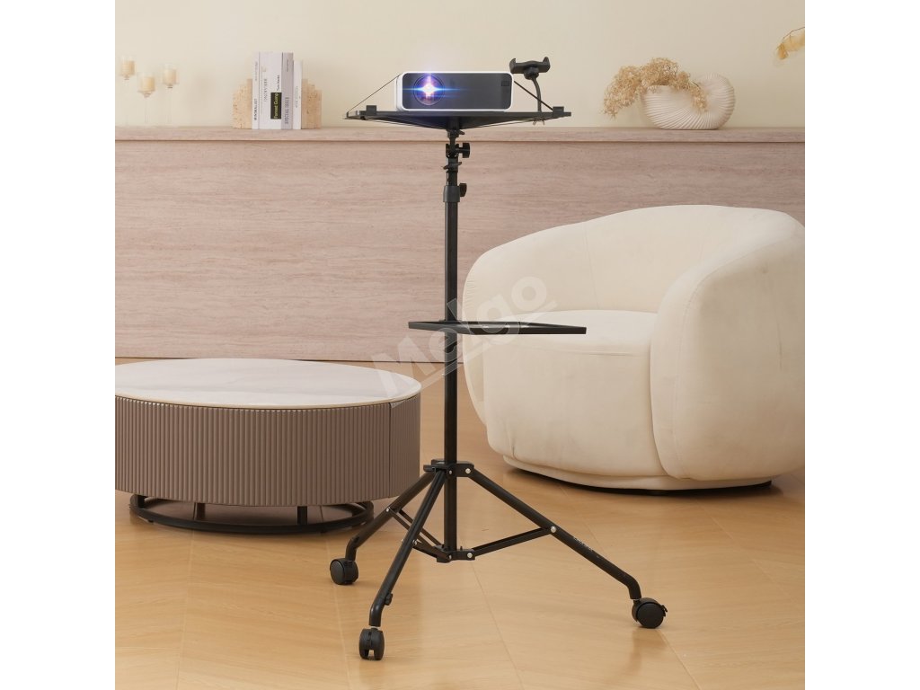 Stojan projektora, nast. 31.3–67.3", 2 police, kolieska, držiak telef.