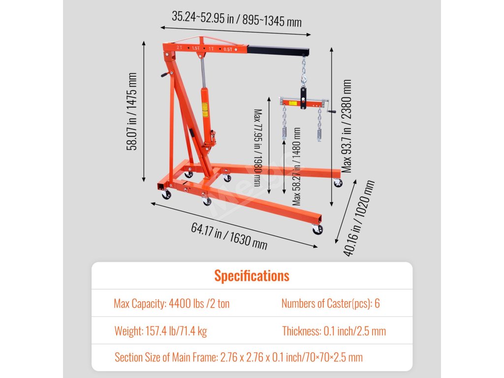 Tento motorový žeriav má maximálnu zdvíhacie kapacitu 2 tony. Vďaka tomu je vhodný na zdvíhanie rôznych motorov vrátane veľkých motorov. Jeho silná zdvíhacia sila zaručuje, že môžete efektívne zvládnuť ťažké úlohy. Či už pracujete na malom motore osobného auta alebo na väčšom motore nákladného auta, tento žeriav si s touto úlohou poradí. Zdvíhacia sila je spoľahlivá a bezpečná, čo znižuje riziko nehôd. Táto schopnosť z neho robí nevyhnutný nástroj pre každého mechanika. Môžete mu dôverovať, že motory zdvihne hladko a bezpečne. Vďaka svojej robustnej konštrukcii dokáže odolať hmotnosti a tlaku. Tento motorový mostík je skonštruovaný tak, aby vydržal a fungoval.