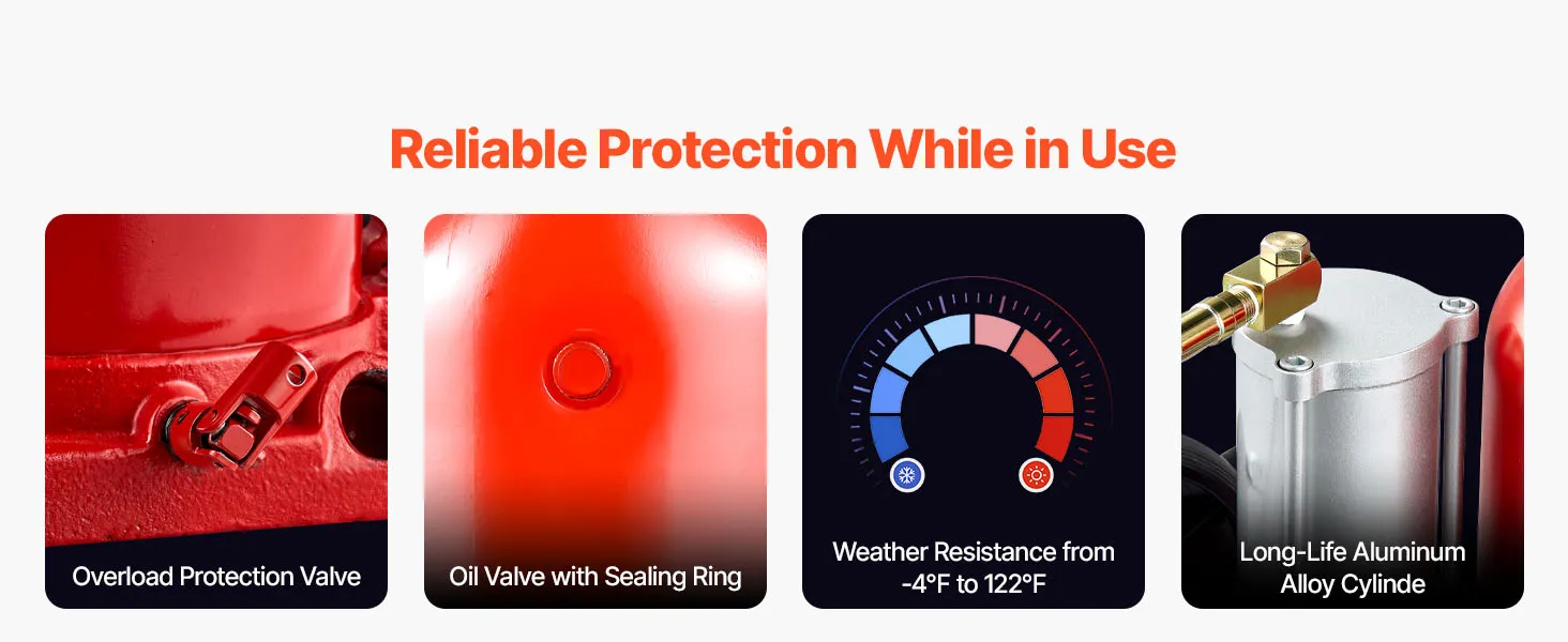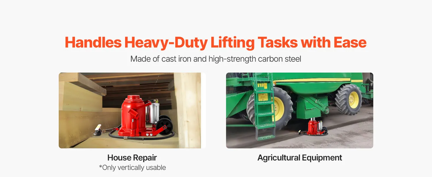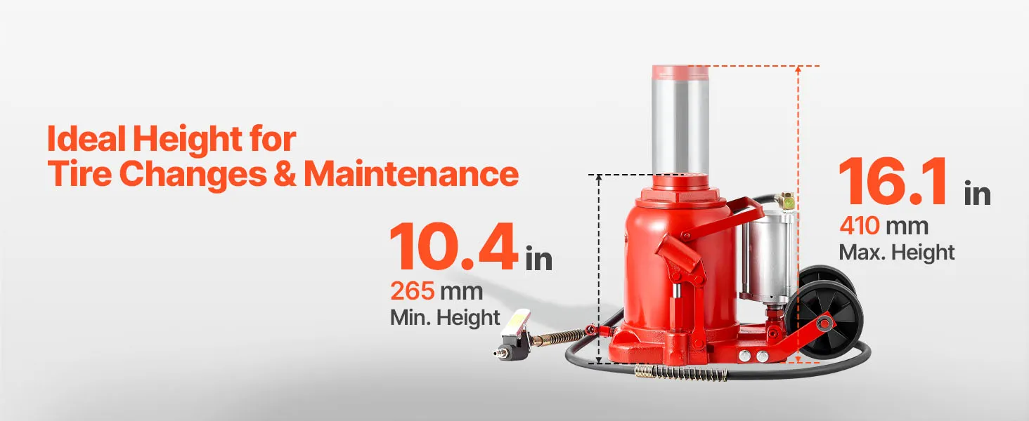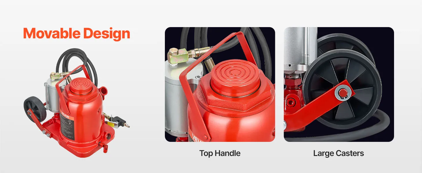 Tento ručný a pneumatický hydraulický zdvihák na fľaše využíva hydraulickú silu na stabilné zdvíhanie až do 50 ton. Zvládne ťažké úlohy, ako sú opravy vozidiel alebo domáca údržba na skrinkových nákladných vozidlách, obytných vozidlách, pick-upoch a SUV.