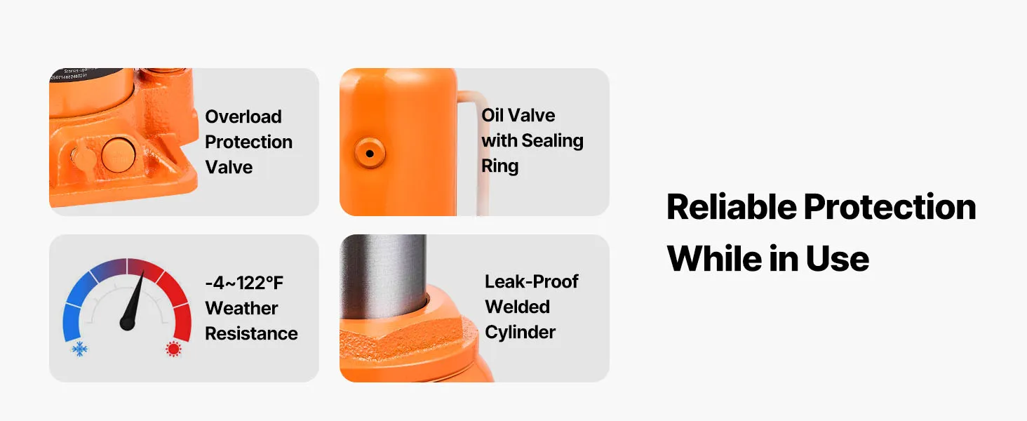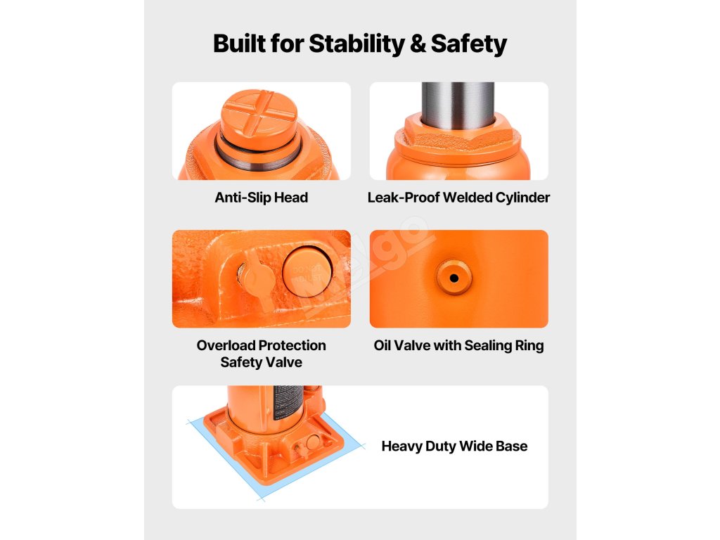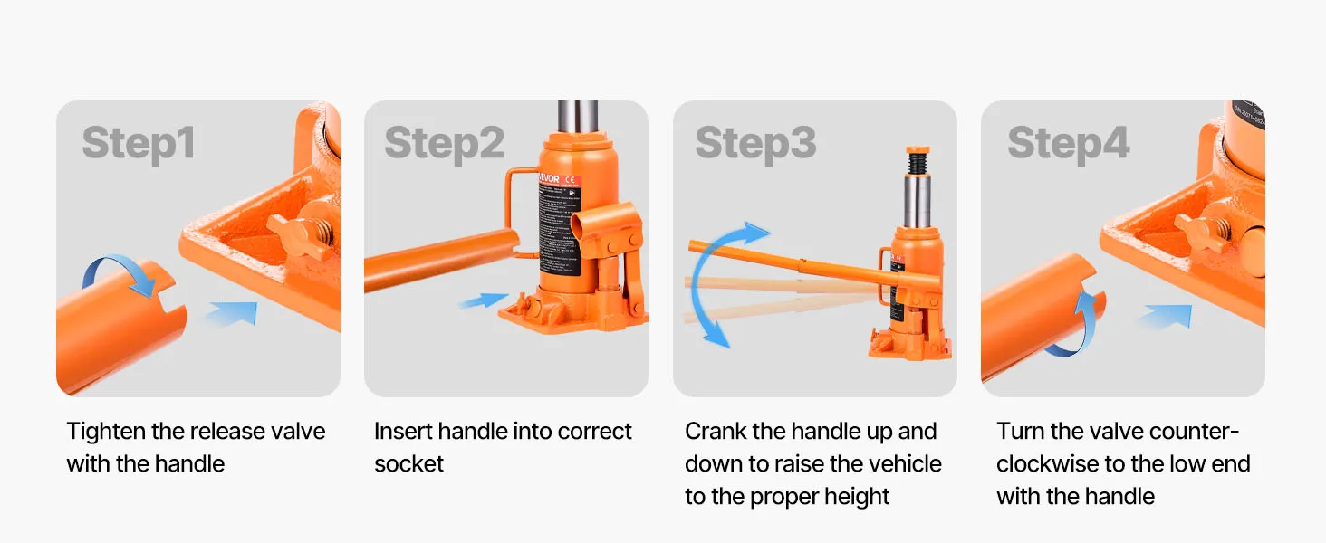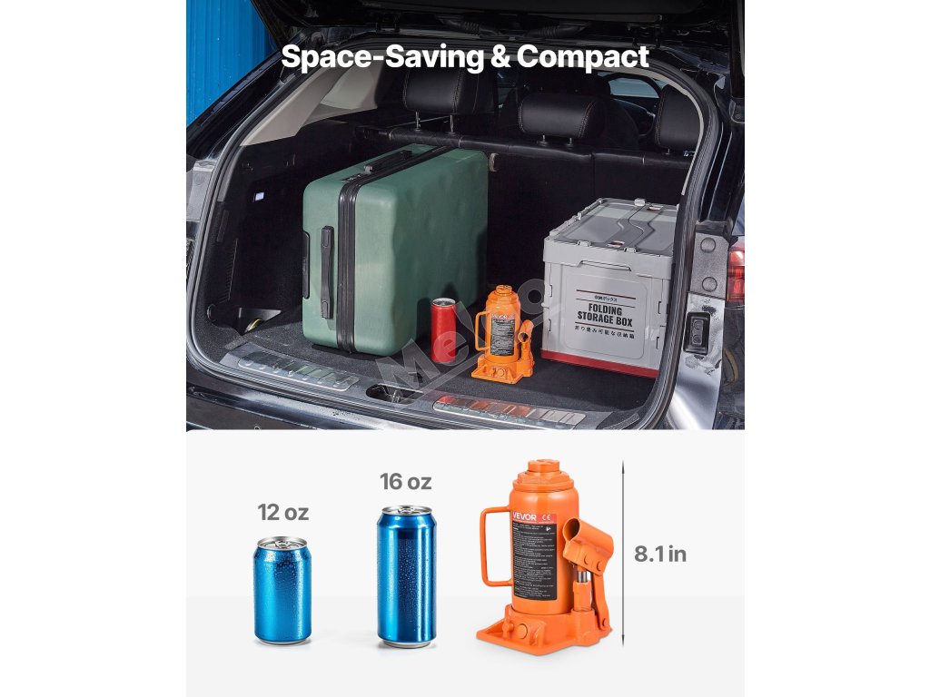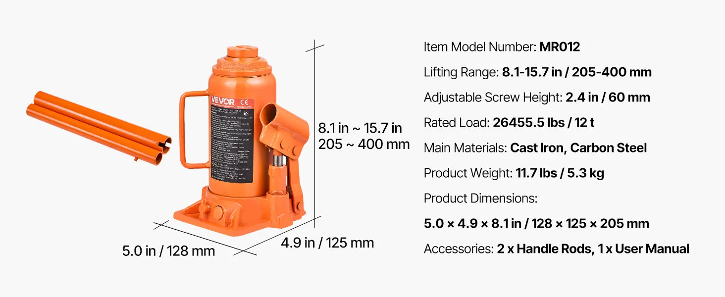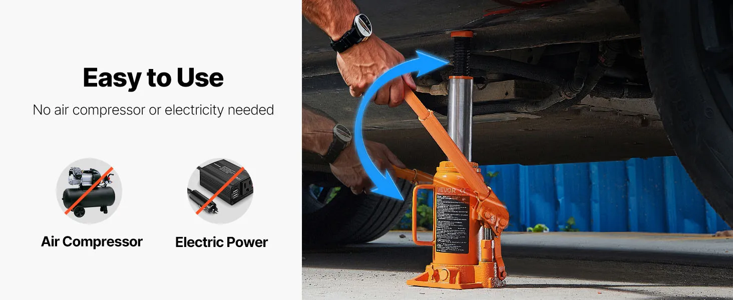 Tento hydraulický zdvihák na fľaše využíva ručné čerpanie na zdvihnutie až 12 ton (26 455,5 libier) stabilnou silou - nie je potrebná elektrina ani vzduch. Je to solídna voľba pre ťažké práce okolo domu, garáže alebo príjazdovej cesty.