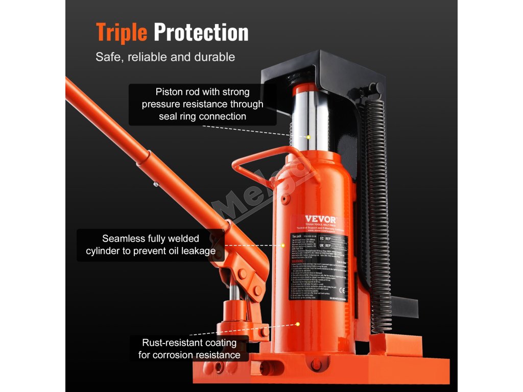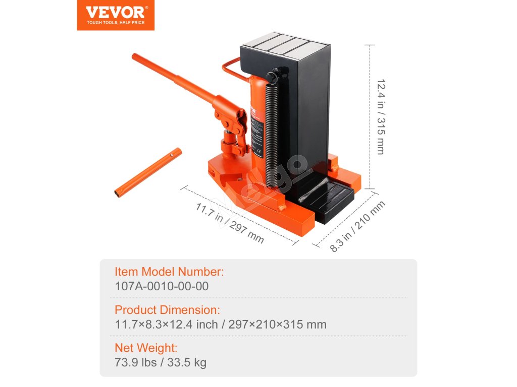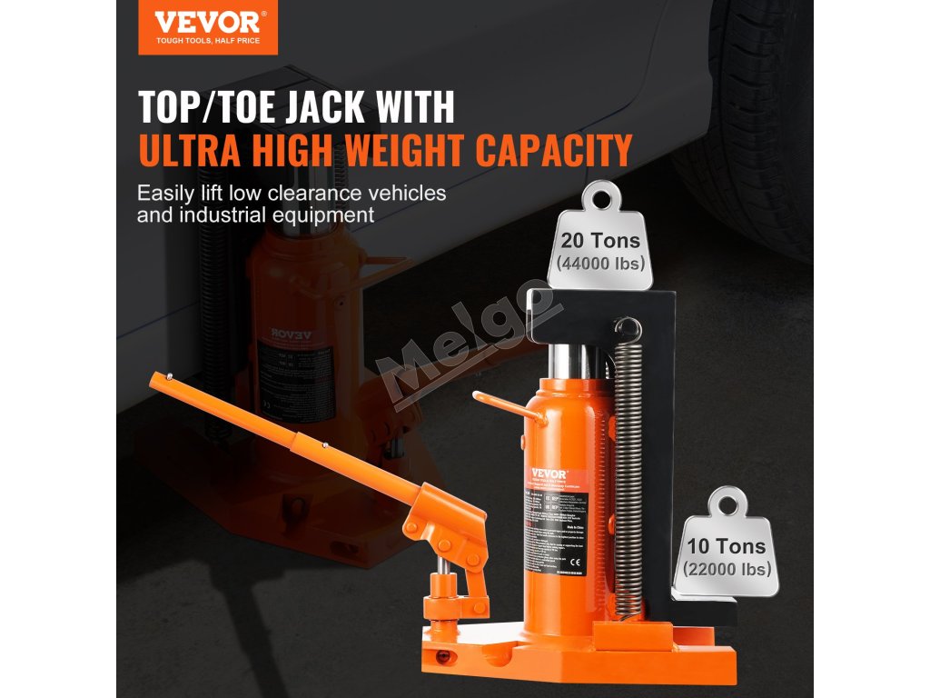 Hydraulický toe jack 10 ton päta/20 ton vrch 1.2–7.5 in/12.6–18.9 in