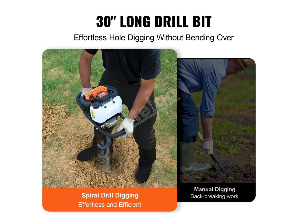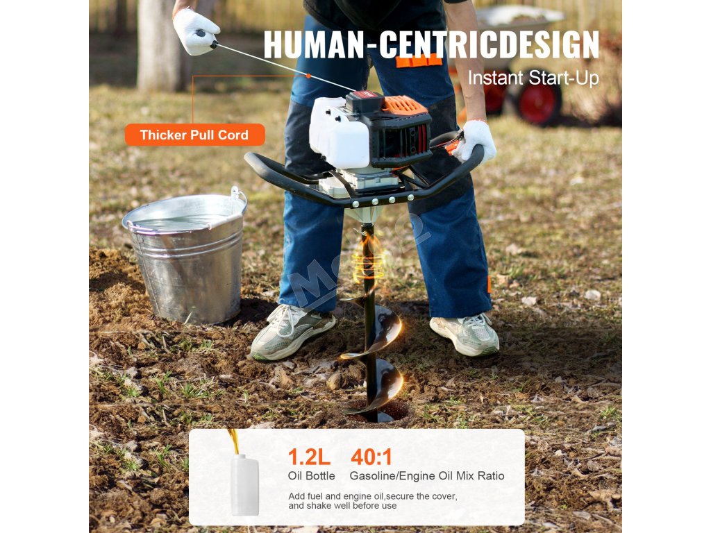 Benzínový zemný vrták 52cc 1450W, 6″ a 10″ vrtáky, 3 predĺženia