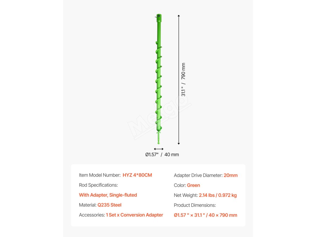 Vrták do pôdy špirálový 40×800 mm, kompatibilný s hriadeľou 20 mm