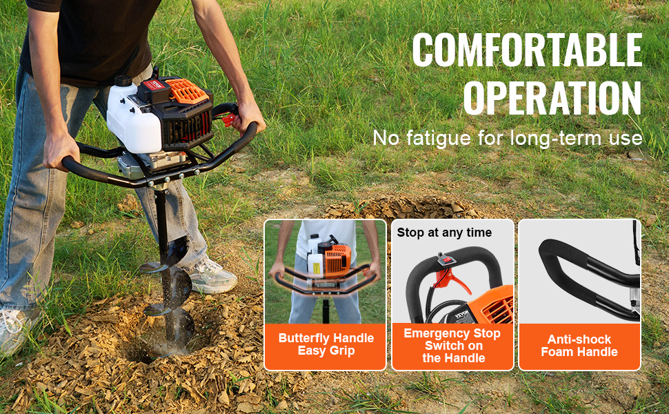 Antivibračná penová rukoväť vám zaistí pohodlie počas práce, núdzový vypínač na rukoväti zaistí vašu bezpečnosť a bezproblémové vypnutie v každom okamihu a motýľová rukoväť je navrhnutá tak, aby sa dala ľahko uchopiť pri dlhých hodinách práce.