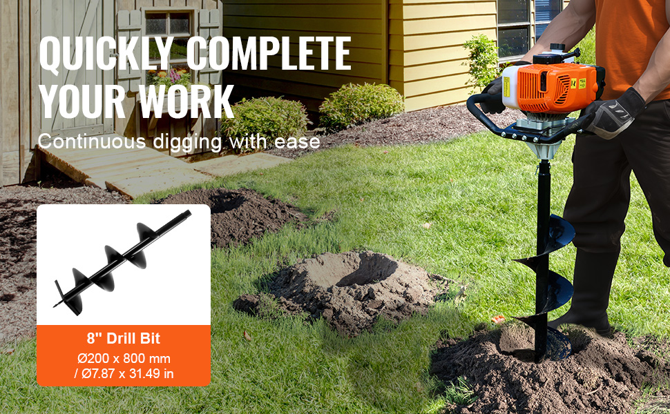 Benzínový zemný vrták 63CC 2400W s 20,3cm vrtákmi a predlžovacou tyčou