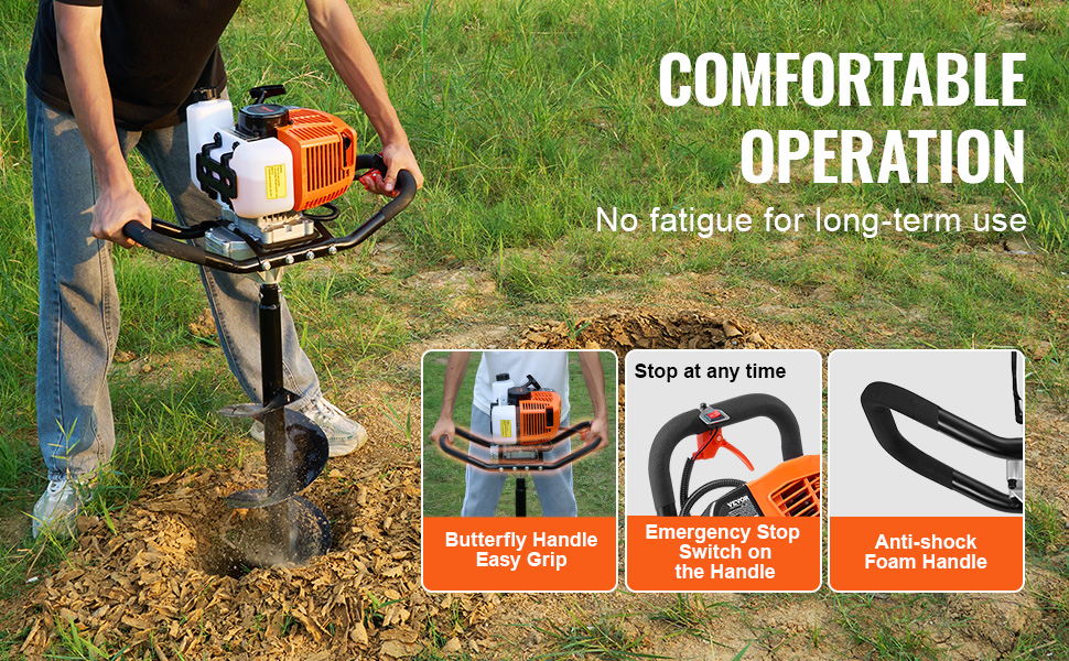 Antivibračná penová rukoväť vám zaistí pohodlie počas práce, núdzový vypínač na rukoväti zaistí vašu bezpečnosť a bezproblémové vypnutie v každom okamihu a motýľová rukoväť je navrhnutá tak, aby sa dala ľahko uchopiť pri dlhých hodinách práce.