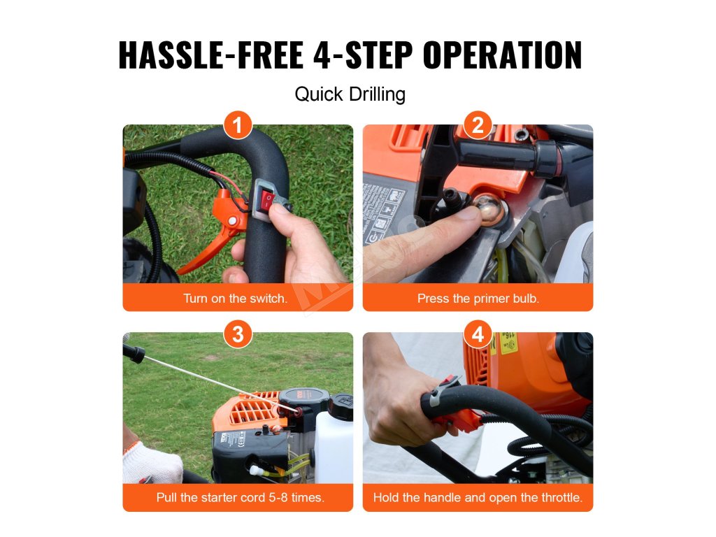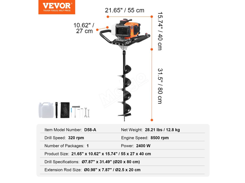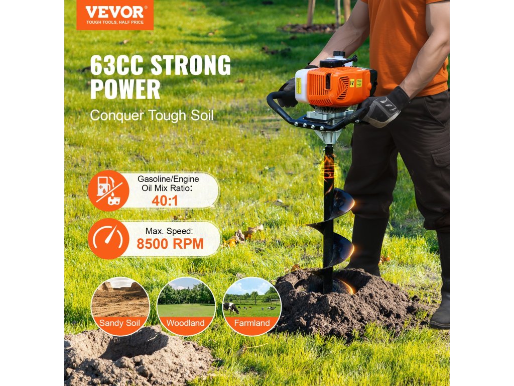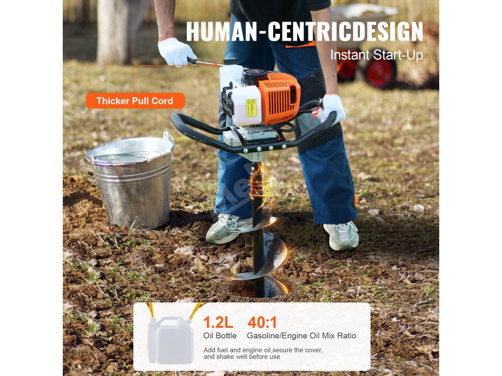 Benzínový zemný vrták 63CC 2400W s 20,3cm vrtákmi a predlžovacou tyčou