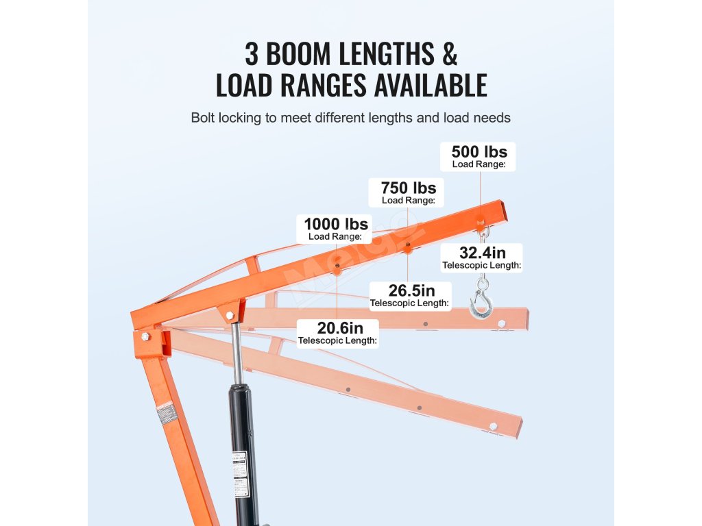 Hydraulický žeriav na ťažné, 1000 lbs, 360° otočný, 500/750/1000