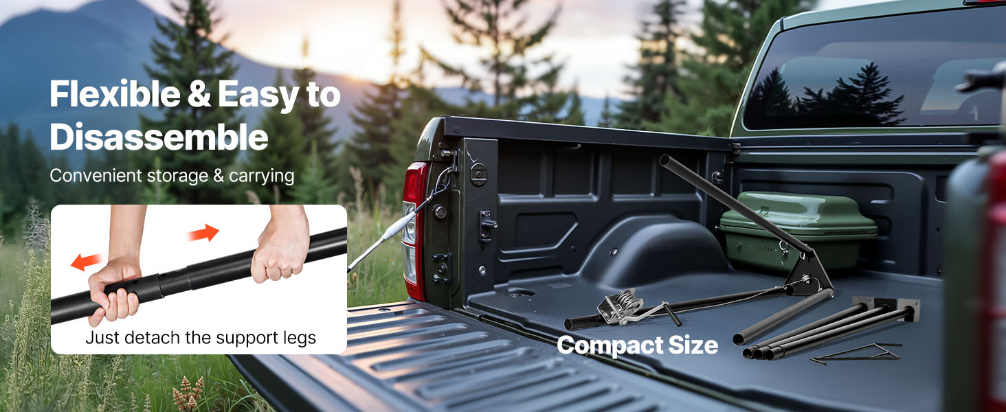 Vďaka trojnožkovej konštrukcii sa tento kladkostroj na jeleniu zver dá ľahko rozložiť a uskladniť. Jeho kompaktné rozmery umožňujú, aby sa zmestil do kufra auta bez toho, aby zaberal veľa miesta, vďaka čomu ho môžete ľahko prenášať kamkoľvek.