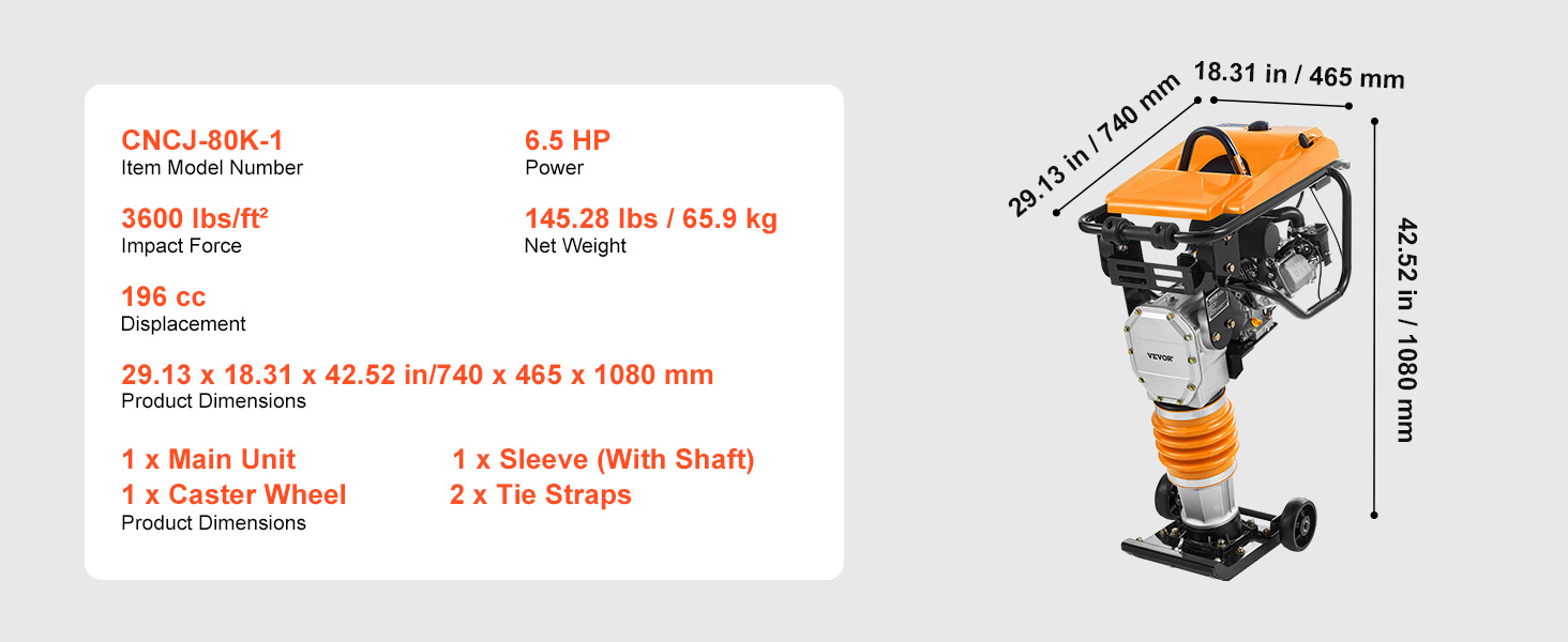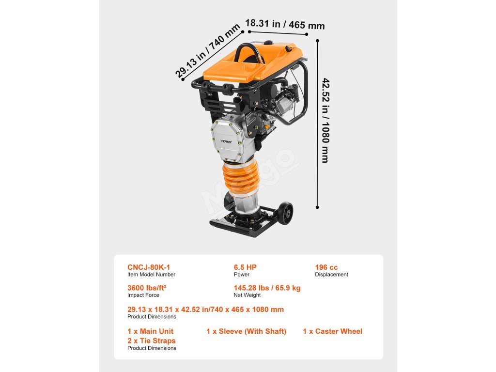 Tento zhutňovač, vybavený motorom s výkonom 6,5 HP a údernou silou 3500 libier, si ľahko poradí s rôznymi typmi pôdy na efektívne zhutňovanie a splní všetky vaše stavebné potreby.