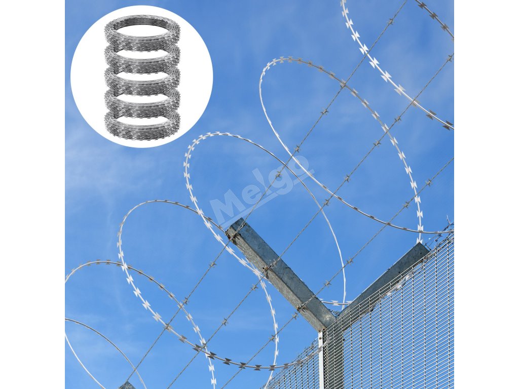 Vďaka svojej špirálovej konštrukcii s ostrými čepeľami, ktoré sú ťažké na dotyk, ponúka tento koncertný drôt výnimočnú izoláciu. Možno ho použiť na ochranu stien na dvoroch a farmách alebo na izoláciu hraníc a ciest.