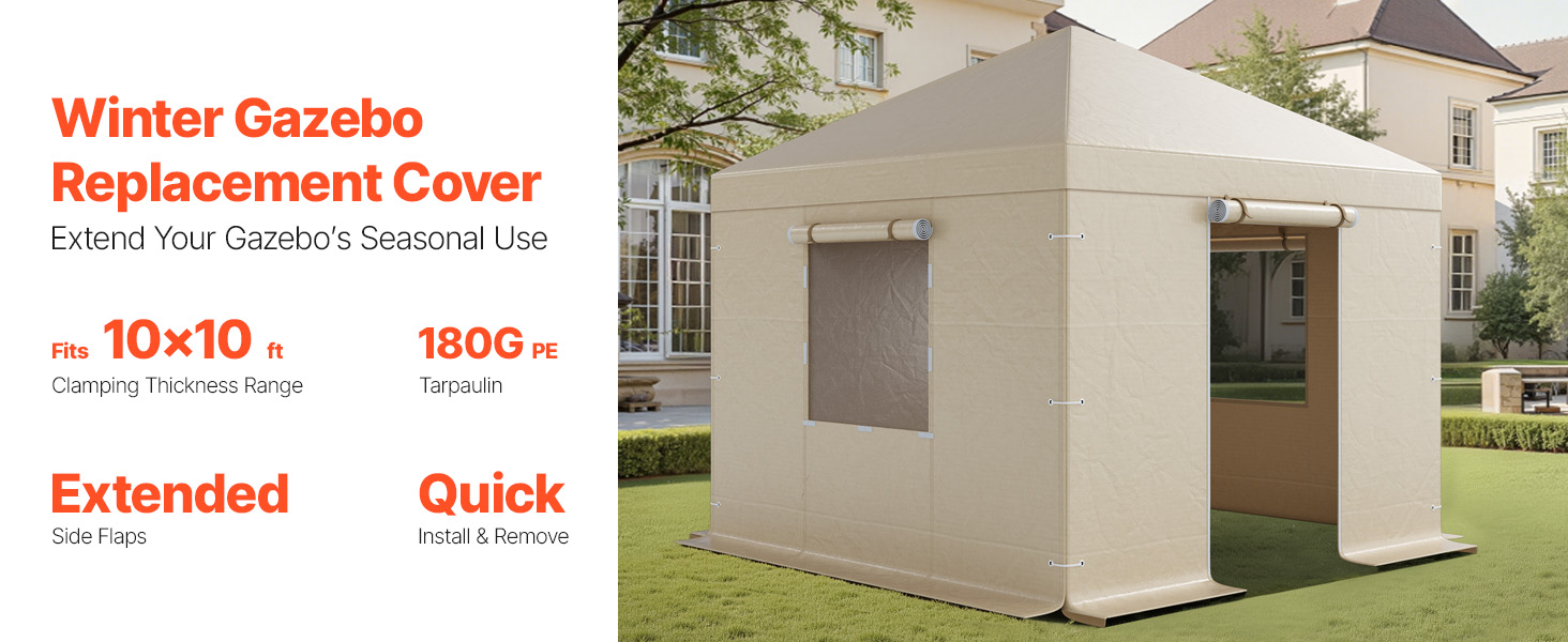 Tento zimný náhradný kryt je určený pre altánky s rozmermi 10 x 10 ft. Plachta z PE s hustotou 180G s odkvapmi pre dodatočnú ochranu. Dvojúčelové sieťové okná zabezpečujú ventiláciu. Zapínanie na suchý zips zaručuje jednoduchú inštaláciu. Je ideálny na uskladnenie vozidiel, športového vybavenia, záhradného náradia.