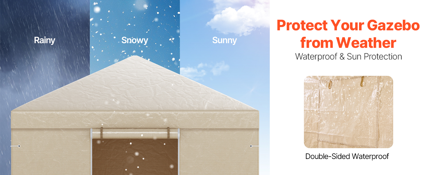 Naše vonkajšie kryty altánkov s obojstrannou PE vrstvou odolávajú vode, slnku a snehu. Chránia váš altánok počas slnečných, daždivých a snehových sezón bez vyblednutia alebo opotrebenia.