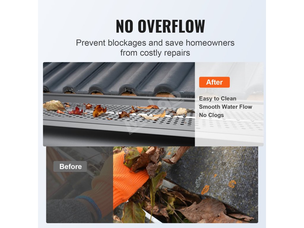 Ste pripravení rozlúčiť sa s ručným čistením odkvapov? Náš systém ochrany odkvapov zabraňuje vniknutiu nečistôt a lístia a zabezpečuje bezstarostný prietok dažďovej vody. Usmerňuje vodu preč z vášho domu, čím zabraňuje nákladným škodám. Investujte do ochranných systémov odkvapov VEVOR ešte dnes, aby ste mali dom bez starostí a s nízkou potrebou údržby.