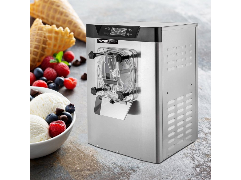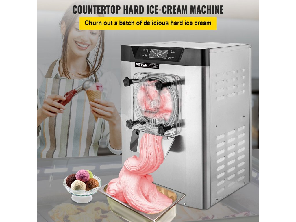 Náš komerčný stroj na tvrdú zmrzlinu, vyrobený z potravinárskej nehrdzavejúcej ocele a PC materiálu, sa jednoducho čistí a je konštruovaný tak, aby vydržal. Má veľký chladiaci valec s kapacitou 1,1 Gal (4,2 l), ktorý zabezpečuje vysokú produkciu 4,2-5,3 Gal (16-20 l) za hodinu. Tento profesionálny stroj na výrobu zmrzliny je ideálny nielen pre obchodné reťazce s chladenými nápojmi, bary alebo iné gastronomické prevádzky, ale aj pre vašu vlastnú rodinu. Bez triviálnych krokov možno v okamihu vyrobiť tvrdú zmrzlinu a vybrať si rôzne príchute podľa vlastnej chuti.