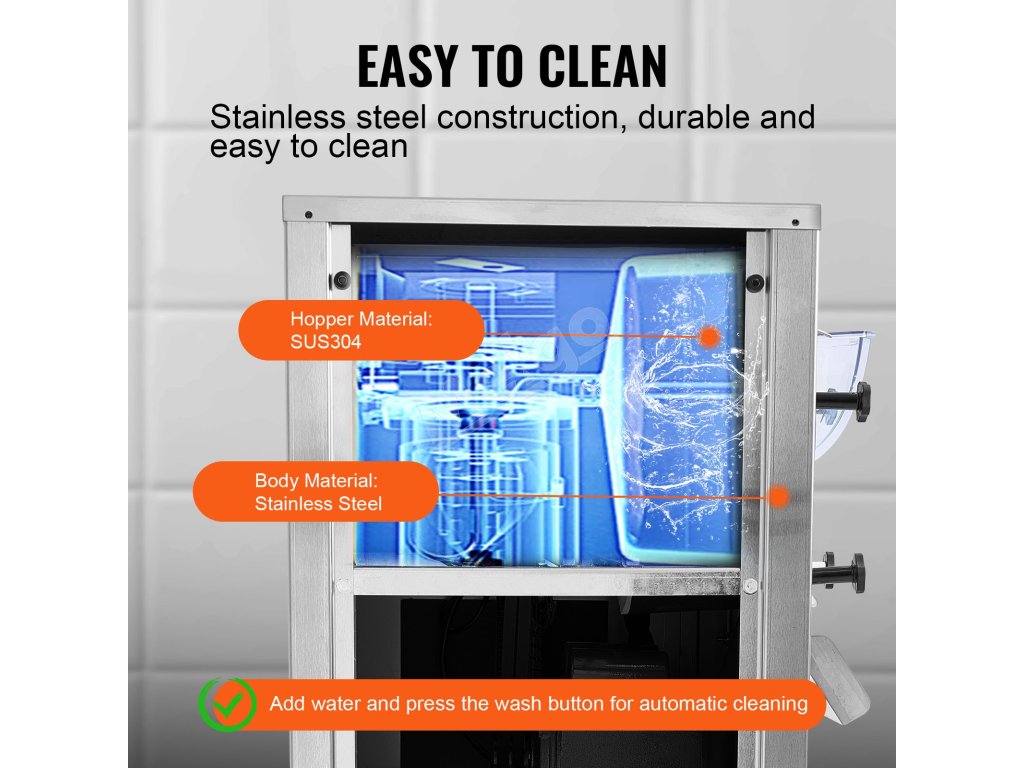 Tento zmrzlinovač na tvrdú zmrzlinu vyrobený z vysokokvalitnej nehrdzavejúcej ocele s valcom z potravinárskej nehrdzavejúcej ocele 304 ponúka zvýšenú odolnosť a jednoduché čistenie. Jeho antikorové vlastnosti zaručujú dlhú životnosť a hygienu v komerčných zariadeniach.