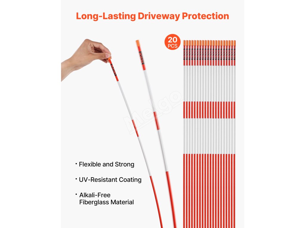 Toto 20 ks príjazdových značiek má 360° reflexné pásy, ktoré ponúkajú vysoko reflexné výstrahy. Reflektory na príjazdovú cestu sú vyrobené z odolného skleneného vlákna, ľahko sa inštalujú a sú vhodné do rôznych terénov. Ideálne na dočasné značenie a kontrolu davu, čo zaručuje bezpečné a bezstarostné používanie!