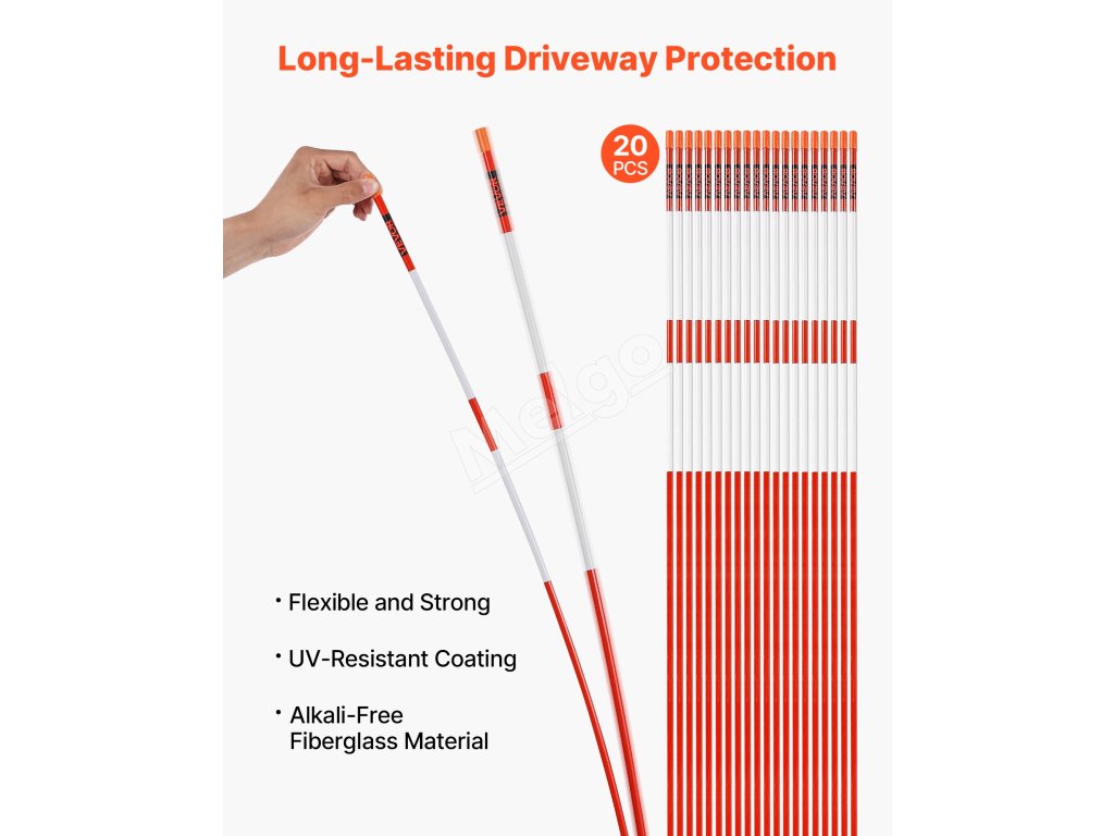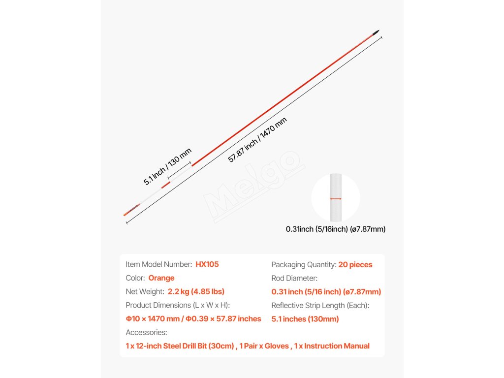 Reflexné tyče na odhrňovanie snehu 20 ks 147 cm 7.87 mm 12 in vrtáky