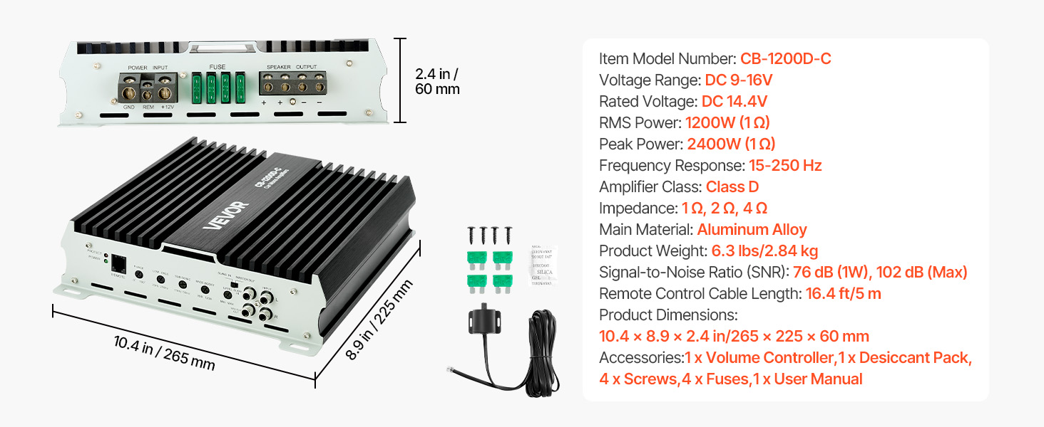 Odporúča sa pre jeden 10-palcový, 12-palcový alebo výkonovo zosúladený dvojitý subwoofer. Nainštalujte na suché, dobre vetrané miesto v kufri alebo kabíne, pričom zabezpečte dostatočný priestor okolo mono zosilňovača v aute na odvod tepla.