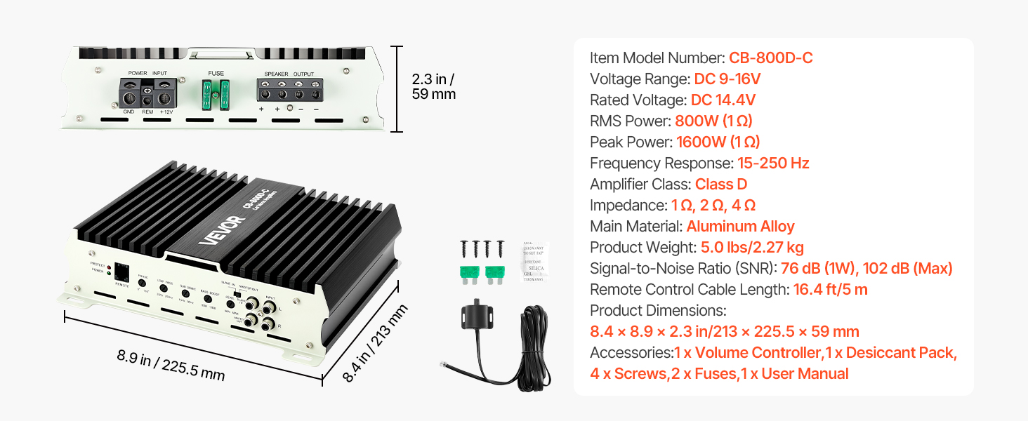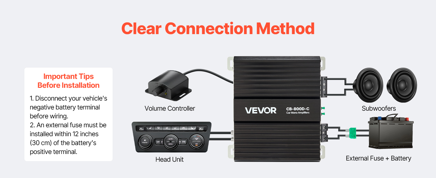 Odporúča sa pre jeden 10-palcový, 12-palcový alebo výkonovo zosúladený dvojitý subwoofer. Nainštalujte na suché, dobre vetrané miesto v kufri alebo kabíne, pričom zabezpečte dostatočný priestor okolo mono zosilňovača v aute na odvod tepla.