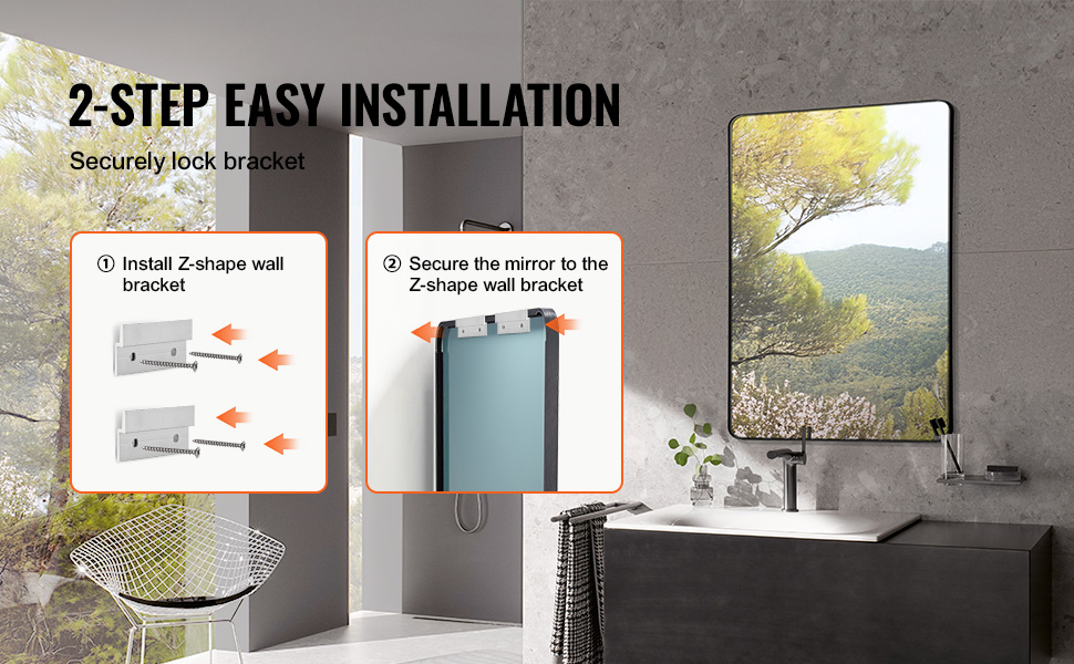 Nástenný držiak tohto nástenného kozmetického zrkadla v tvare písmena Z zjednodušuje inštaláciu, čím minimalizuje potrebu predvŕtaných otvorov alebo obavy z poškodenia steny. Stačia dva jednoduché kroky a zrkadlo sa bezpečne pripevní na miesto.